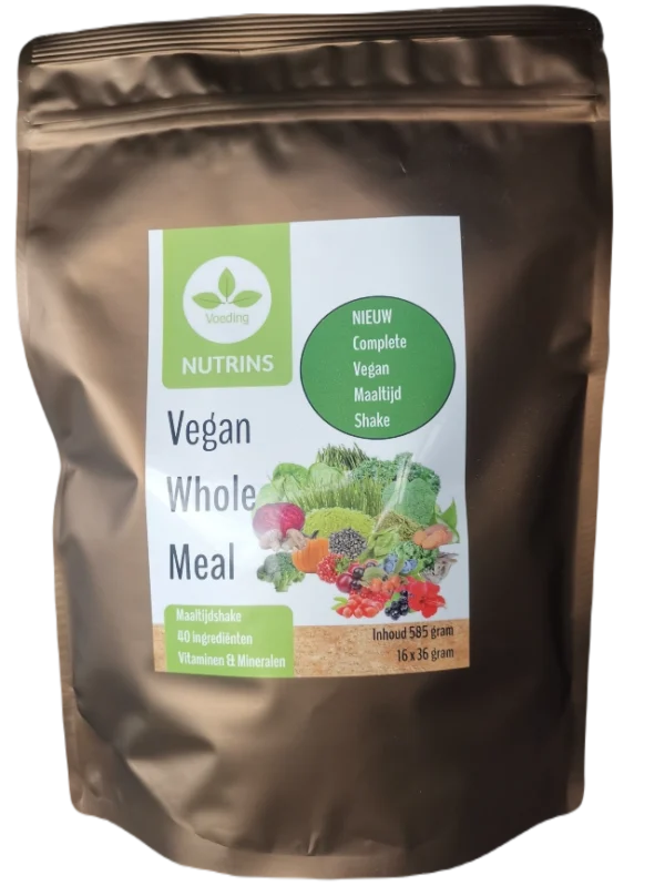 Vegan meal shake rijk aan proteïnen, langzame koolhydraten, vezels(!) en vegan vitaminen en mineralen. 50 Superfoods inclusief VEGAN multivitaminen en mineralen 50% RI per portie. 12% proteïnen, 71% koolhydraten, 2% vet, 27% vezels.